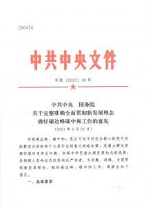 9月22日,中共中央下发《关于完整准确全面贯彻新发展理念做好碳达峰碳中和工作的意见》,内容极其丰富。文件强调:实施可再生能源替代行动,大力发展风能、太阳能、生物质能、海洋能、地热能等,不断提高非化石能源消费比重。坚持集中式与分布式并举,优先推动风能、太阳能就地就近开发利用。
